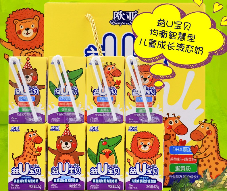 益U寶貝:均衡營(yíng)養,為孩子的健康成長(cháng)保駕護航?!耙鎁寶貝”是歐亞專(zhuān)為兒童量身打造的精品牛奶。