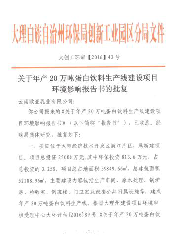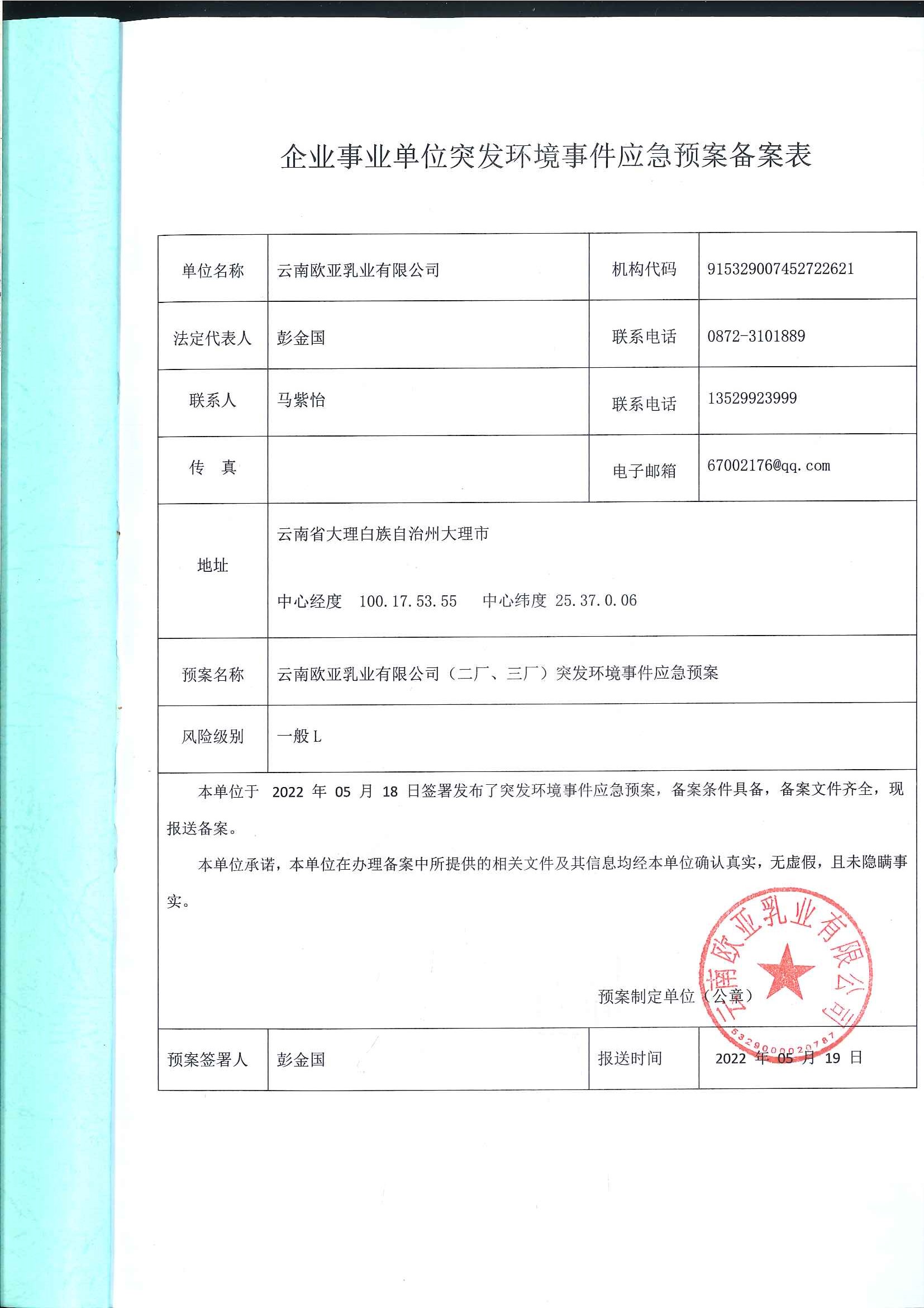 云南歐亞乳業(yè)有限公司(三廠(chǎng))信息公開(kāi)