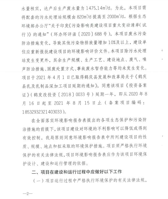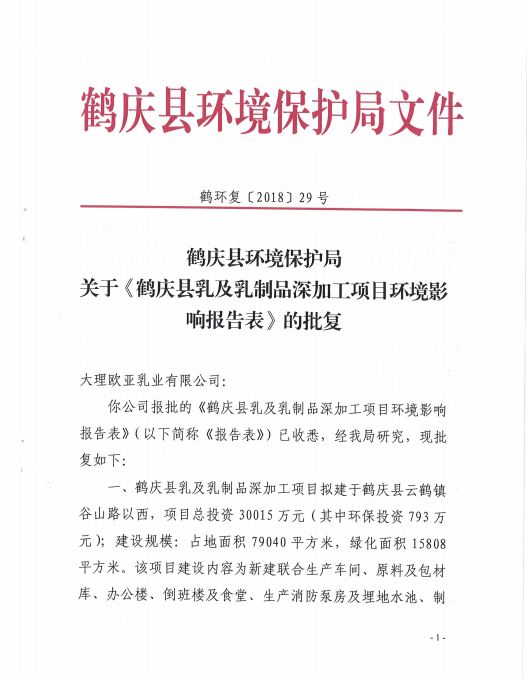 (二)鶴慶縣環(huán)境保護局關(guān)于《鶴慶縣乳及乳制品深加工項目環(huán)境影響報告表》的批復