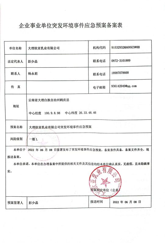 大理歐亞乳業(yè)有限公司信息公開(kāi)